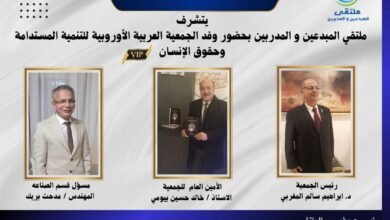 - تحت المنصة الإعلامية للدكتورة نرمين جمعة.. وفد الجمعية العربية الأوروبية للتنمية المستدامة وحقوق الإنسان في ملتقى المبدعين